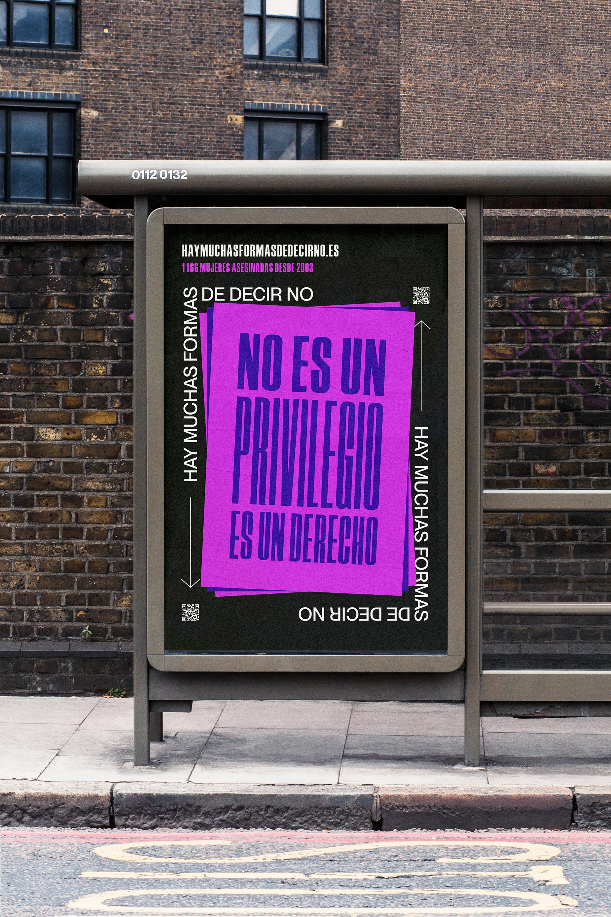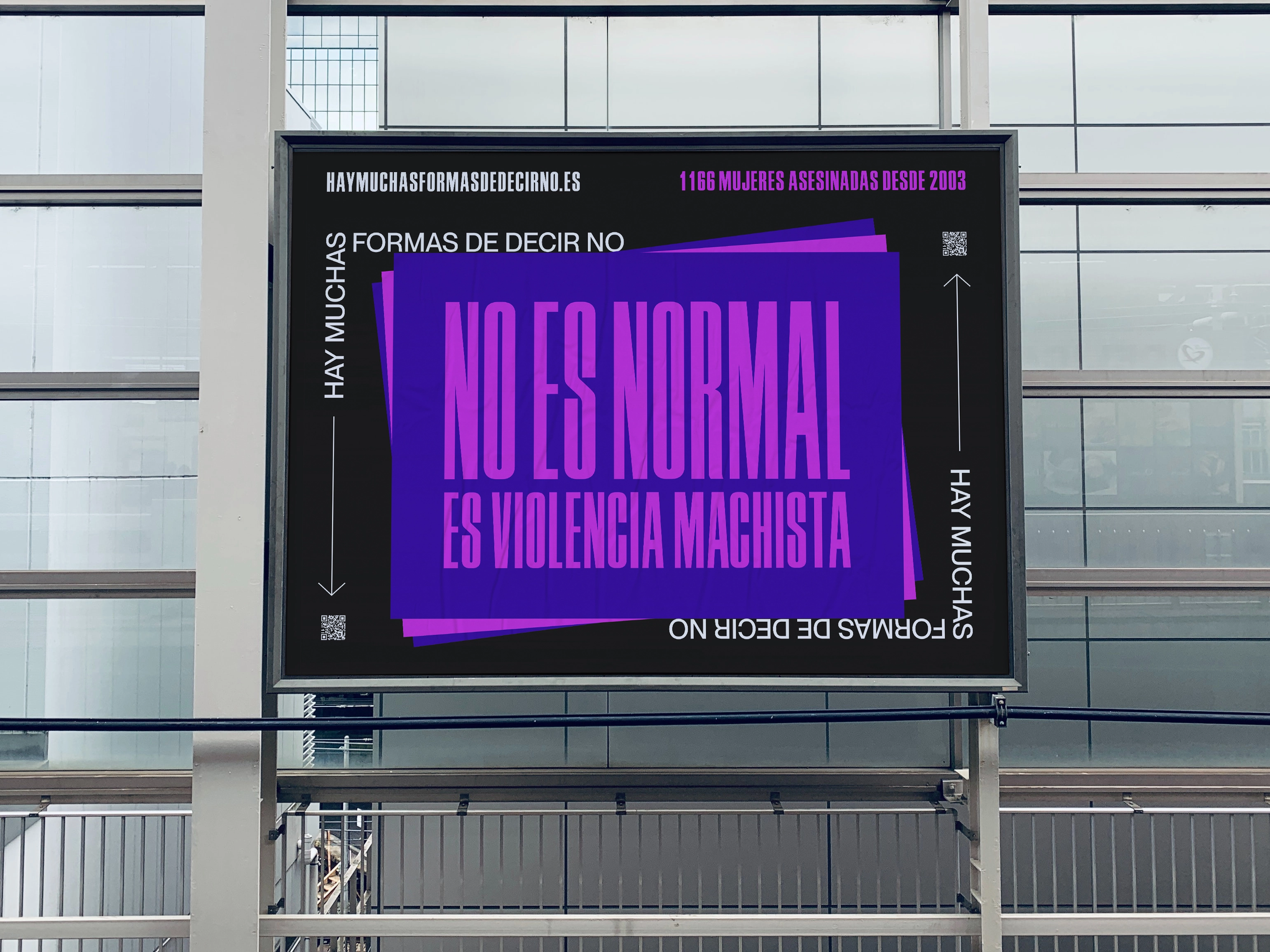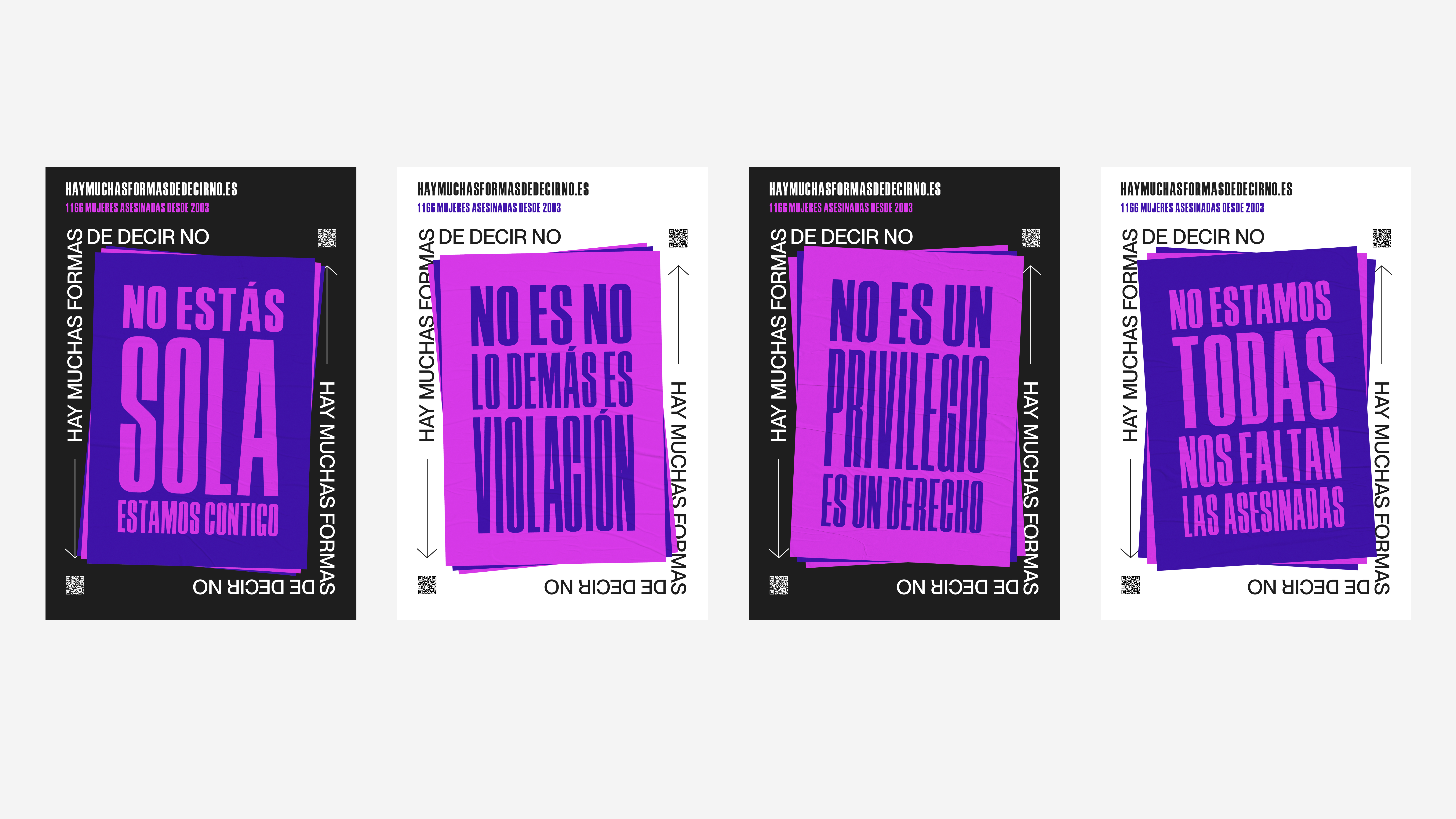 Hay muchas formas de decir no is a social awareness campaign where design is used as a tool for communication and denouncing violence against women in Spain. The naming is powerful, direct and universal, it indicates the intolerant attitude that must be taken in the face of this violence. The visual language that is created from the different graphic resources creates a code of warning and urgency due to the seriousness of the situation. The campaign encourages social participation through the availability of resources in online formats.